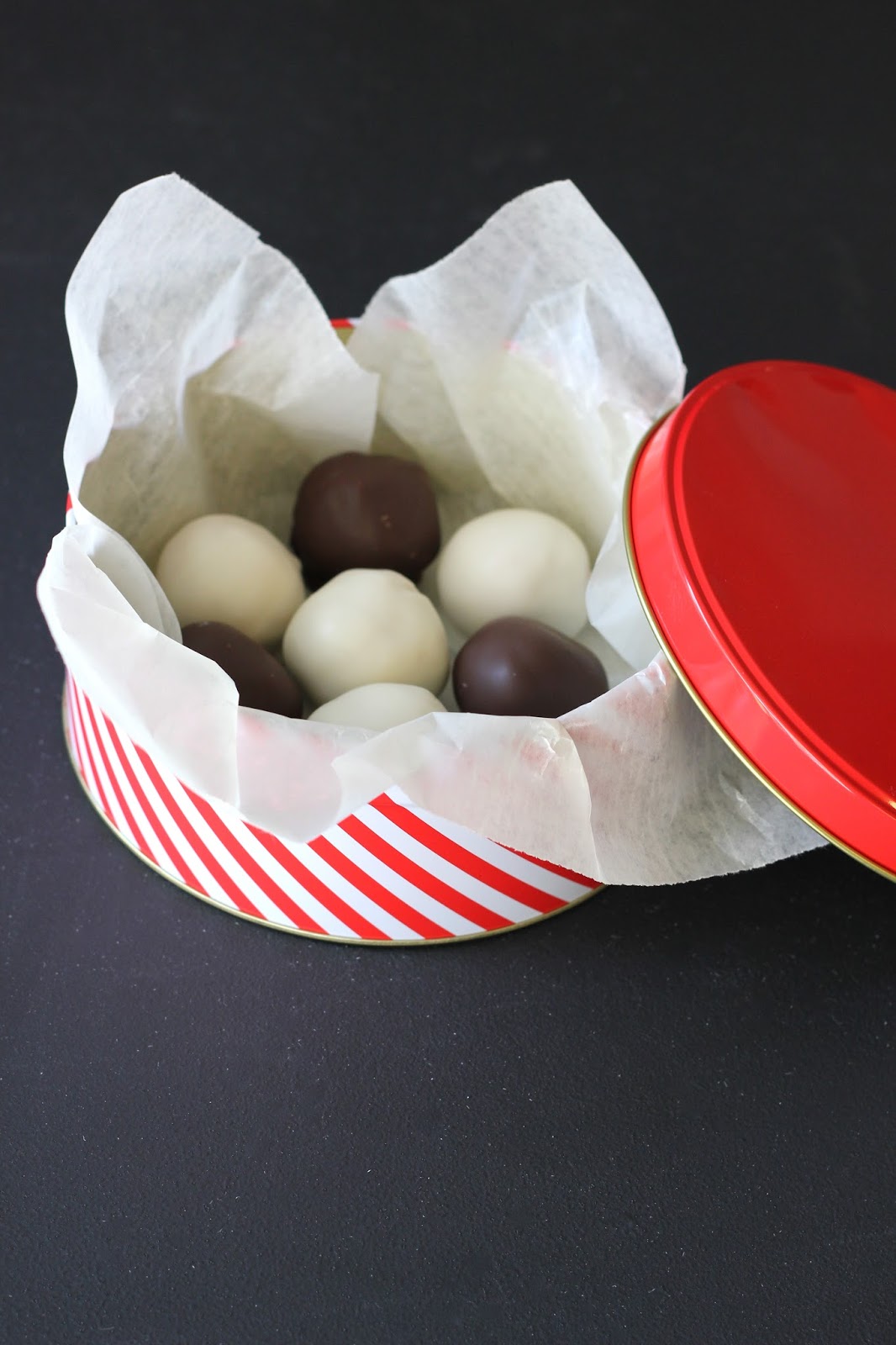 If you asked me what was my favorite candy/treat to make these would be it (today anyways! ha.) The creamy peanut butter just melts in your mouth. I prefer them dipped in white chocolate but milk chocolate is also wonderful. I usually do both. I made some and packaged them up in tins and delivered to neighbors and friends.