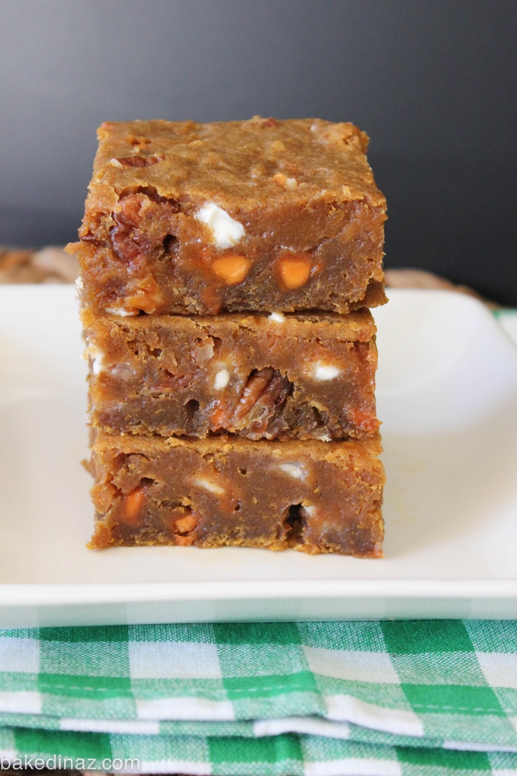 I have always loved blonde brownies. Add in pumpkin, white and butterscotch chips?! Wow, amazing I tell you. The texture is kind of a mix between a brownie & a pie. Mmmmm!