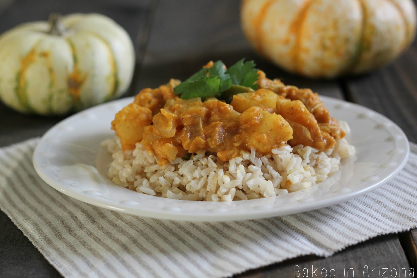 Curry with a hint of pumpkin, a delicious, easy fall meal.